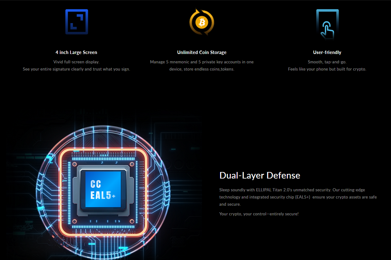 The Ellipal Titan 2 is a premium hardware wallet that combines security with a sleek, phone-like design. It’s perfect for users who want a high-end device with advanced features.